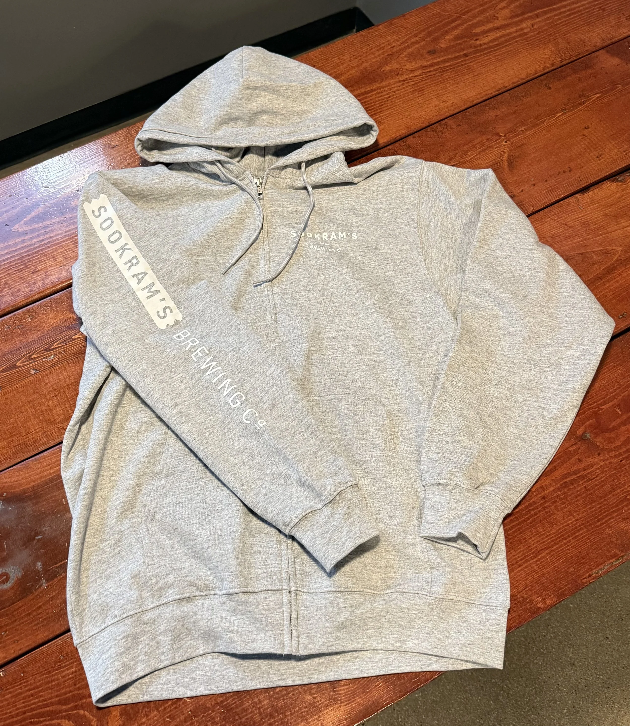 Printed locally at Floodway, these pull over hoodies have a Sookram’s logo on the front left and along the right arm.